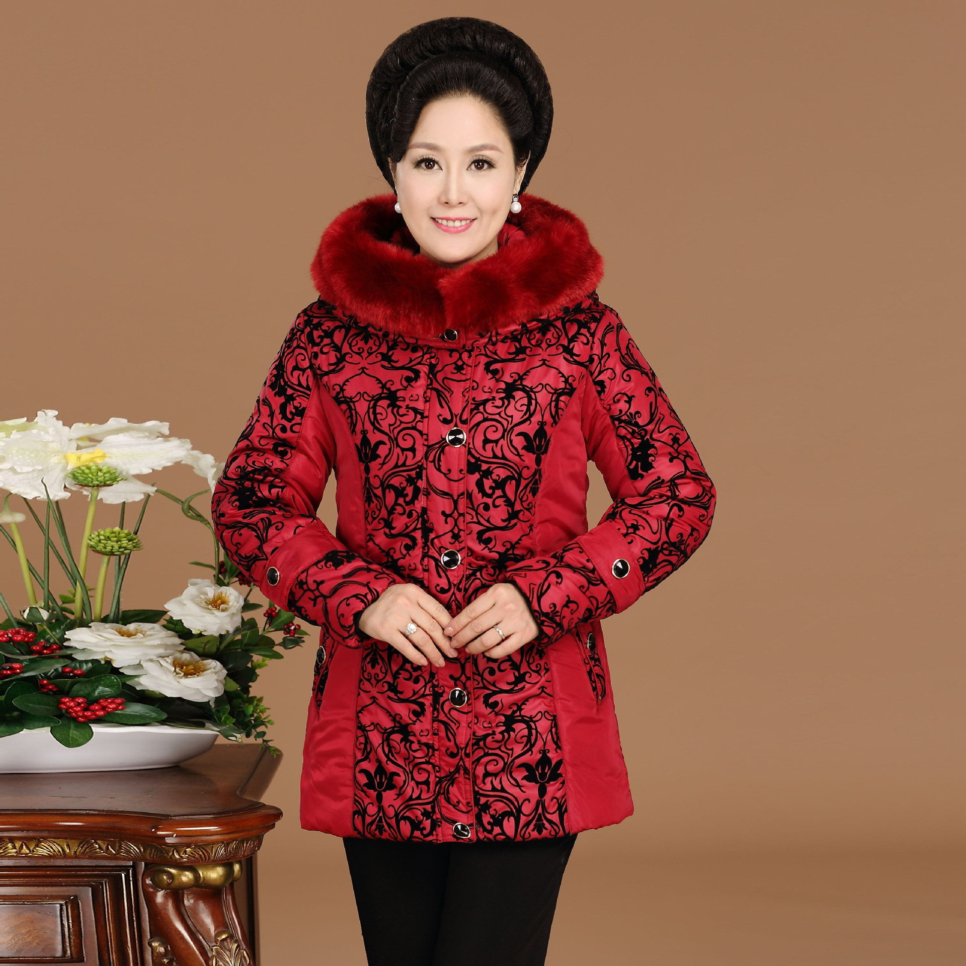 15冬新款中老年女裝媽媽裝棉衣高端氣質中長款羽絨棉服中年女棉襖 /