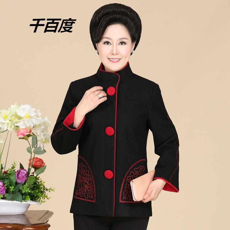 2015冬季新款中老年毛呢大衣大碼媽媽裝呢子中長外套風(fēng)衣廠家批發(fā) /