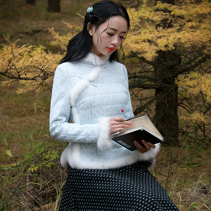 筱姿女裝 2015冬裝新款 復古夾棉兔毛修身百搭蕾絲長袖棉服K-1012 /