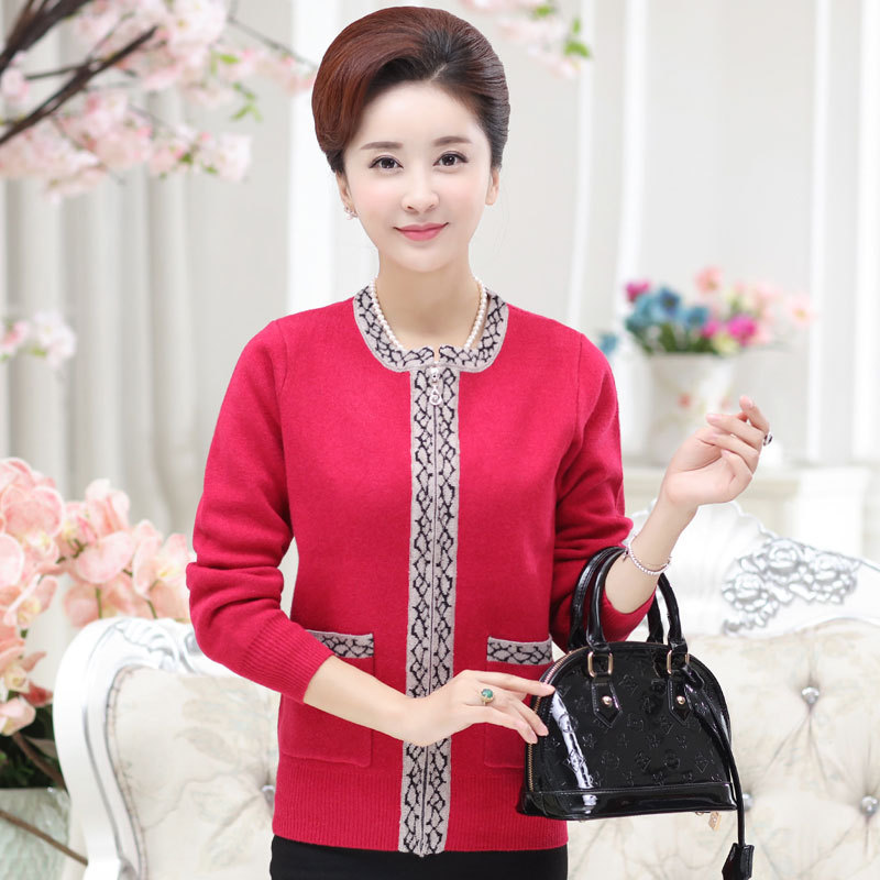 中老年女裝毛衣厚開衫媽媽裝針織大碼圓領長袖羊毛衫外套新款潮 /