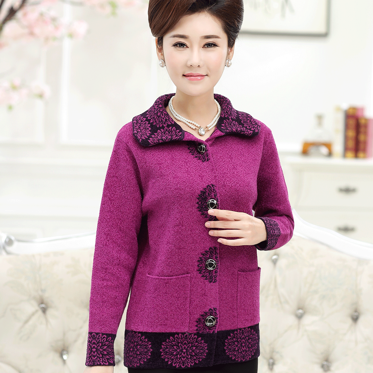 新款廠家直銷羊絨保暖中老年女裝正裝毛衣女外套媽媽裝開衫加厚 /