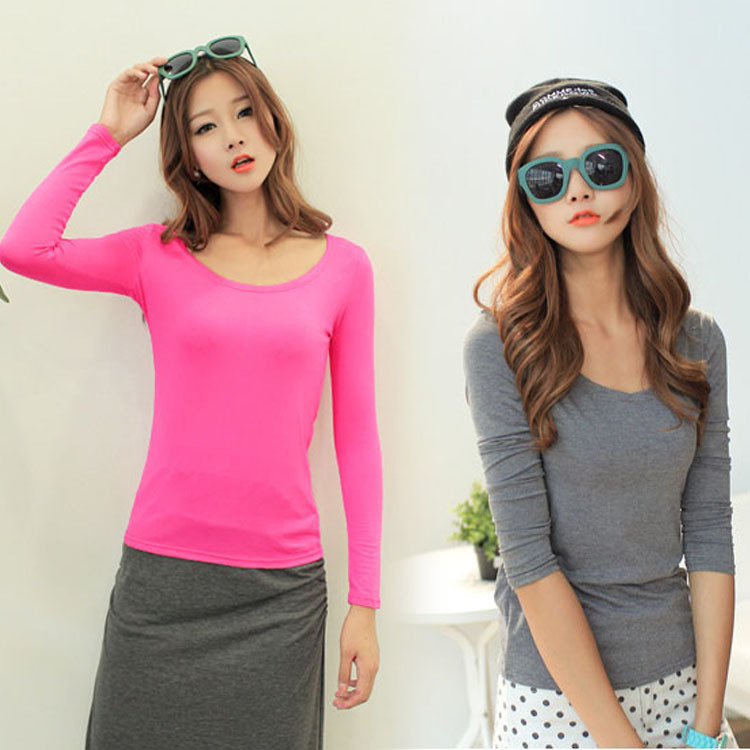 2015春裝新款牛奶絲修身女士打底衫長袖 棉質圓領T恤 批發直銷 /