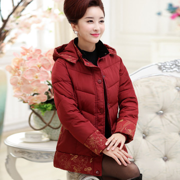 15年新款中老年女裝連帽領棉服 中年媽媽裝寬松大碼時尚棉衣外套 /