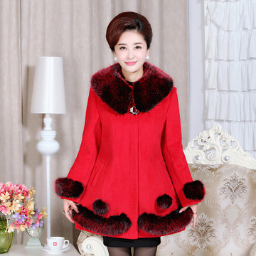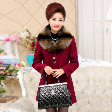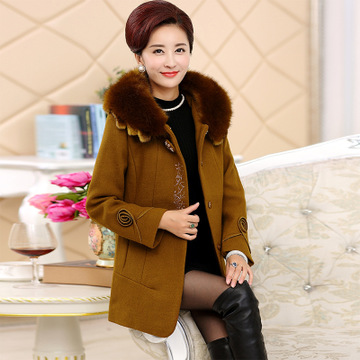 中老年女裝毛呢外套 羊毛呢子可拆卸毛領大衣媽媽裝秋冬季厚上衣 /