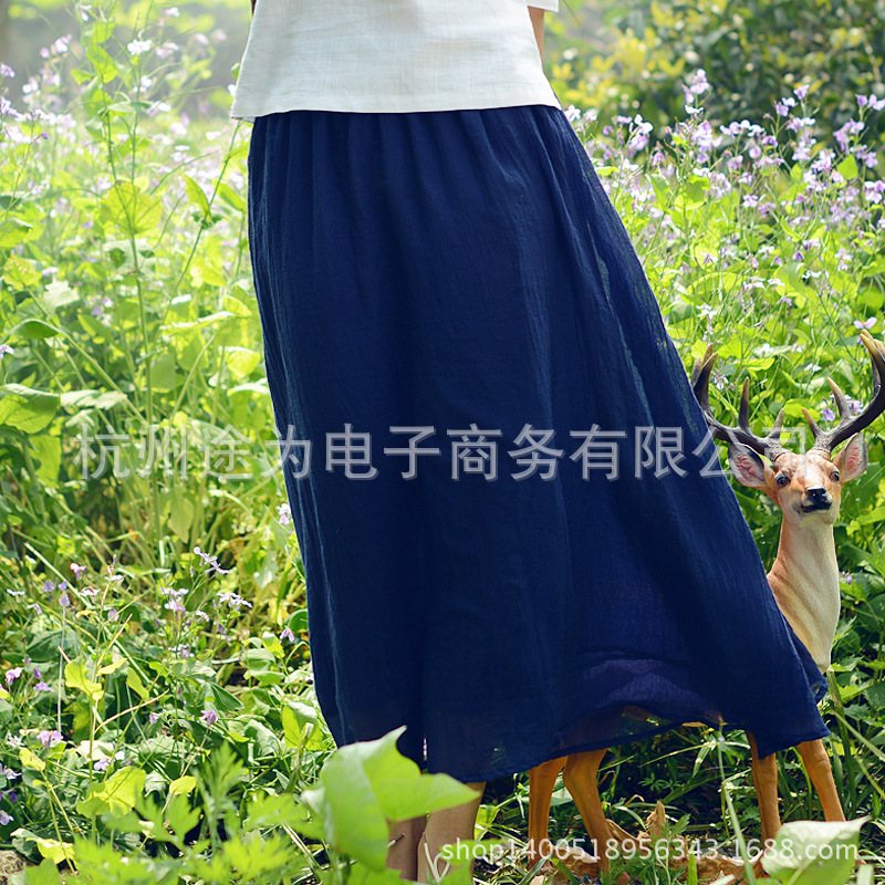 2015夏裝新款 文藝復古純色棉麻半身裙寬松舒適大擺百褶裙子 /