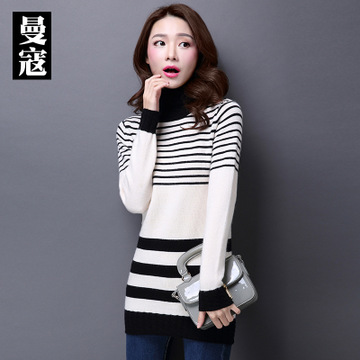 2015秋冬季新品女士高領毛衣套頭針織打底衫韓版中長款修身女外套 /