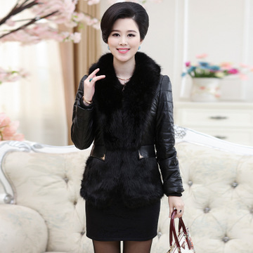 高端 新款中老年女裝冬裝棉衣PU皮中年時尚媽媽裝大毛領皮草棉服 /