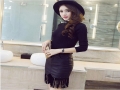 新款韓版高腰鉚釘流蘇PU皮短裙顯瘦包臀皮裙 /