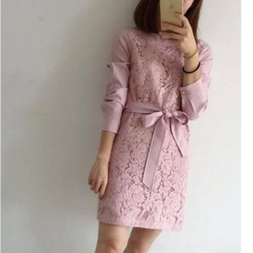 秋裝新款韓版女裝 圓領(lǐng)長袖氣質(zhì)顯瘦 蕾絲連衣裙 /