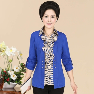 2015中老年新款女裝 中年媽媽裝假兩件長袖t恤 休閑媽媽裝t恤批發 /