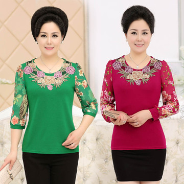 2015新款中老年女裝長袖 秋裝媽媽裝大碼雪紡休閑T恤 /