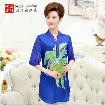 簡介: 貨源類別現貨 產地常熟 品牌母后吉祥 貨號短袖T恤 款式類別女式T恤 風格休閑 適合季節夏季 圖案純色 流行元素褶皺 適用年齡段45-55 主圖來源實拍有模特 上市年份/季節2015年夏季 面料名稱雪紡 主面料成分聚酯纖維(滌綸) 主面料成分的含量96(%) 顏色綠色,藏青色,蘭色,玫紅色 尺碼XL,2XL,3XL,4XL,5XL 材質雪紡