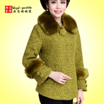 中老年秋裝婦女短款大碼媽媽冬裝40-50歲中年女裝加厚羊毛呢外套 /