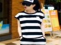 2015夏季學(xué)生裝新款百搭條紋寬松休閑跑步套裝女夏潮T恤短褲 /