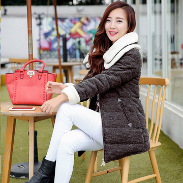 實(shí)拍韓國新款棉衣韓版羽絨服女中長款加厚毛呢羊羔毛外套批發(fā) /