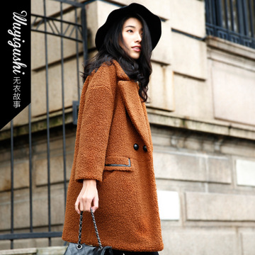 羊羔毛呢子外套女韓版時尚中長款2015秋冬新款保暖毛呢大衣沒貨 /