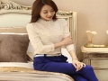 加絨加厚打底衫2015秋冬新款翻領修身蕾絲衫女釘珠長袖打底衫批發 /
