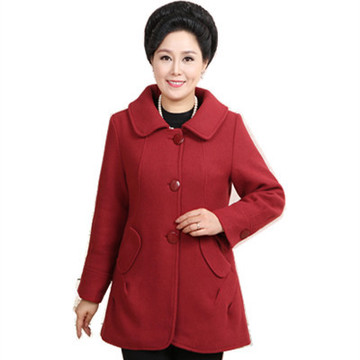 中老年女裝新款毛呢外套純色大碼媽媽裝上衣中年女士時(shí)尚呢子外衣 /