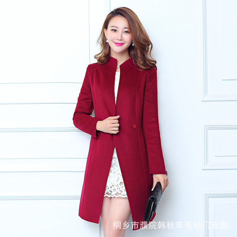批發(fā)西裝領(lǐng)羊毛大衣毛呢外套歐洲站純色雙面呢女裝中長款羊毛大衣 /