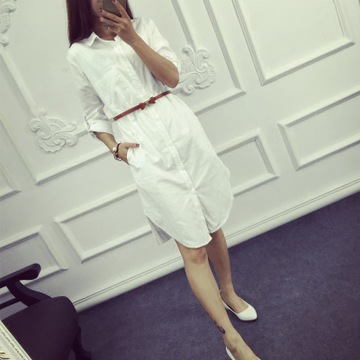 春裝韓版白襯衫長袖韓范女裝學生中長款寬松bf風襯衣裙子純棉 /