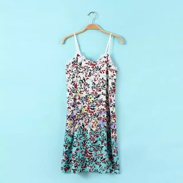外貿(mào)批發(fā)速賣通歐美風(fēng)時尚甜美碎花人棉數(shù)碼定位漸變吊帶裙連衣裙 /