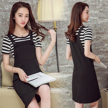 2016夏裝新款女裝時尚顯瘦韓版背帶裙兩件套休閑連衣裙女 /