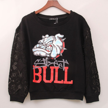 新款歐美潮款動(dòng)物印花圓領(lǐng)長袖蕾絲拼接女裝衛(wèi)衣品牌貨源廠家直銷 /