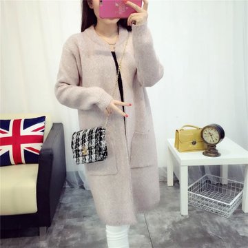 2016春季新品韓版女裝外套純色口袋中長款潮流百搭針織開衫毛衣女 /