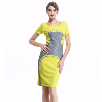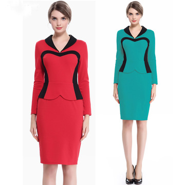2016亞馬遜速賣通貨源歐美大牌高端時尚氣質撞色長袖鉛筆裙批發 /