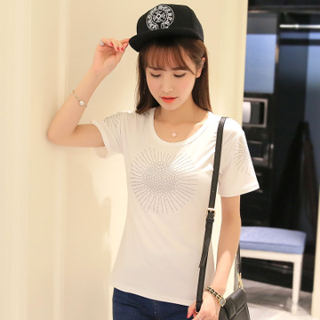 短袖t恤女寬松學生韓國2016夏裝印花中長款韓版上衣女t恤夏 /