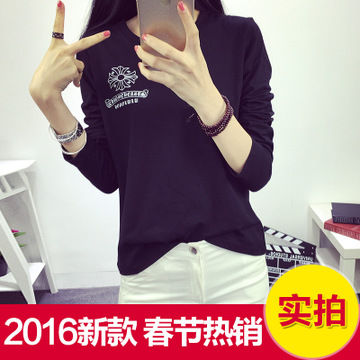 2016春季新款長袖T恤韓版打底衫修身顯瘦上衣大碼女裝潮 /