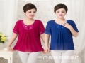 中老年女裝夏裝新款短袖T恤 薄大碼寬松中年媽媽裝真絲雪紡衫 /