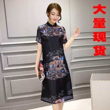 實拍夏季2016 高端品牌 氣質款 歐根紗真絲旗袍式連衣裙 /