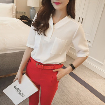 2016夏季新款韓版修身百搭哈倫褲高腰褲和雪紡T恤兩件套套裝女 /