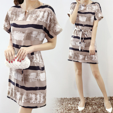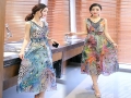 2016夏季新款時(shí)尚甜美波西米亞長(zhǎng)裙女裝印花短袖雪紡連衣裙 /