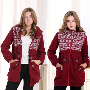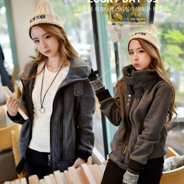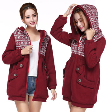 2015冬季新款襖韓版大碼女裝胖mm外套加絨加厚中長款拉練連帽衛衣 /