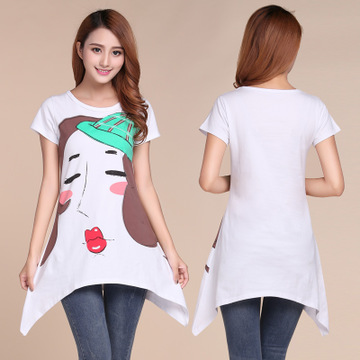 夏季新款韓版大碼女裝胖mm200斤上衣寬松顯瘦中長款棉圓領短袖t恤 /