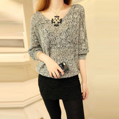 2015秋冬新款韓版女裝蝙蝠袖套頭純色針織衫V領薄款鏤空毛衣外套 /