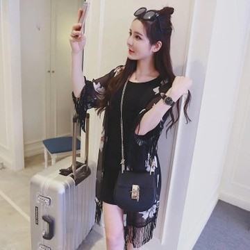 2016新款韓版三色花紋流蘇雪紡?fù)馓追罆褚?/span> /