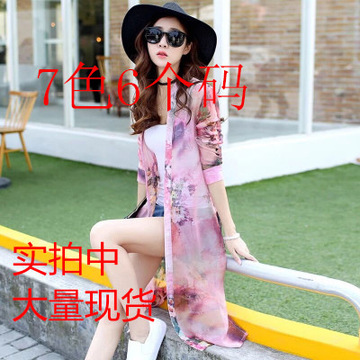 2016新款防曬衣中長(zhǎng)款外套女薄披肩印花雪紡衫大碼防曬衣7色6碼 /