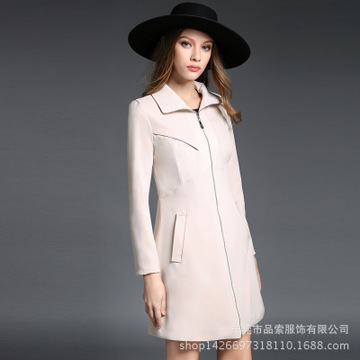 廠家直銷高檔時尚呢料拉鏈羊絨大衣 /