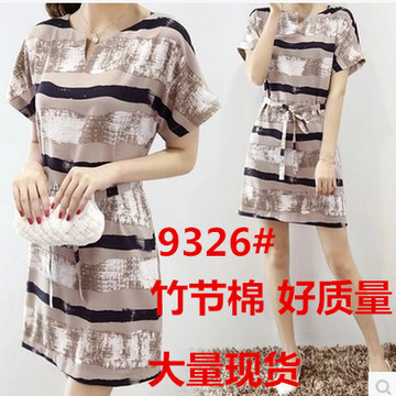 2016夏季新款韓版休閑大碼女裝寬松顯瘦時尚條紋印花連衣裙 /