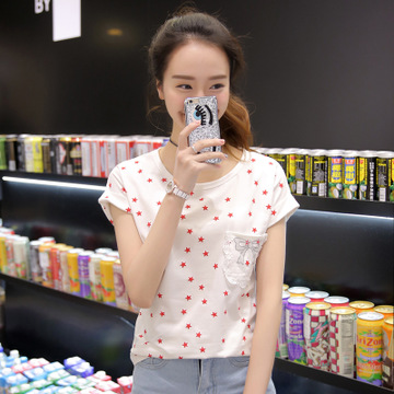 2016韓版女夏新款寬松顯瘦星星印花百搭短袖T恤款 實拍 /
