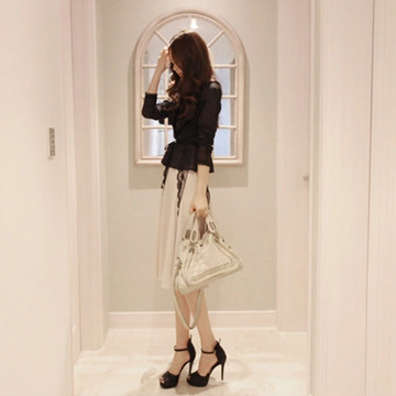 2016春裝新款三件套吊帶連衣裙 時(shí)尚蕾絲外套連衣中裙批發(fā) /