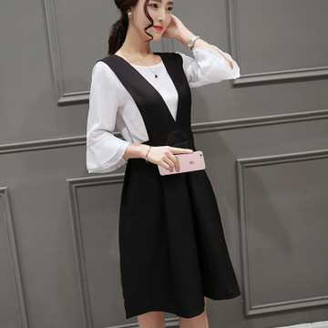 2016韓版背帶連衣裙雪紡寬松女裝中長(zhǎng)裙時(shí)尚兩件套 /