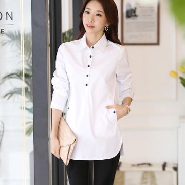 2016春款韓版范純棉插口袋中長(zhǎng)款百搭白襯衫大碼女裝寬松打底衣衫 /