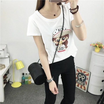 卡通印花純棉短袖T恤女套頭寬松新款體恤 /