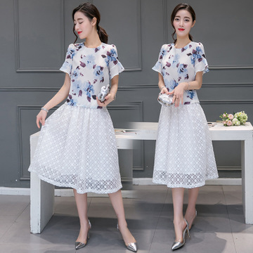 包郵 一件代發 2016春夏新款印花雪紡衫+擺裙 /