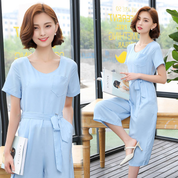 實拍2016歐洲站連體褲女夏修身短袖闊腿褲時尚套裝連衣褲潮 /