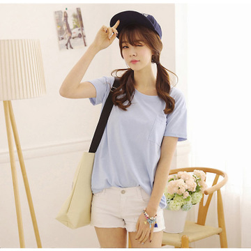 2016韓國東大門純色百搭圓領寬松口袋短袖T恤 女韓風學院風上衣 /